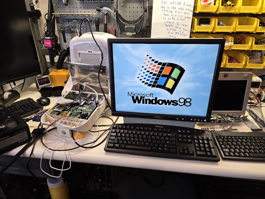 It doesn't start with the classic Windows 98 boot animation because it loads at a lower resolution than the monitor will display, so there was a bit of nervous anticipation after the screen went blank.