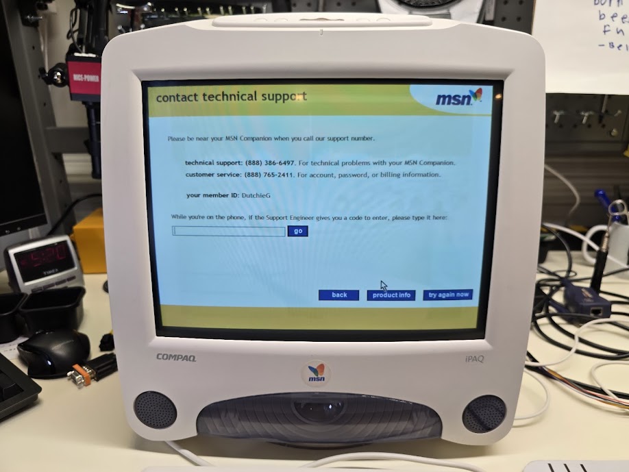 Back around the year 2000, I followed Internet appliance hacking guides from the i-Hacker BBS to run Windows 98 on a Netpliance i-Opener and a Virgin Webplayer. I wanted to replace the embedded OS on my iPAQ IA-2, but I couldn't find much information on the machine. So, I'm sharing my own deep dive into the Compaq iPAQ IA-2.